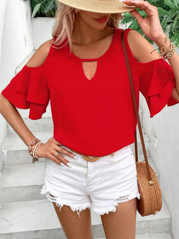 Cold Shoulder Flounce Sleeve Blouse
