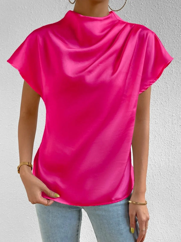 Mock Neck Short Sleeve Blouse