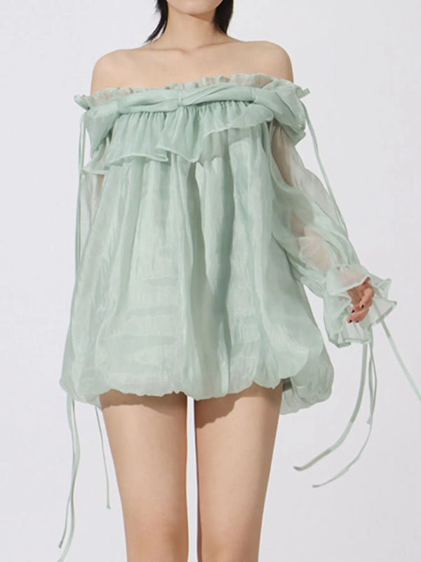 Ruffled Off-Shoulder Flounce Sleeve Blouse