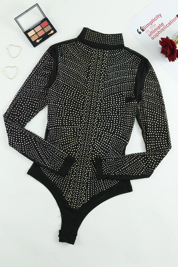 Rhinestone Mock Neck Long Sleeve Bodysuit