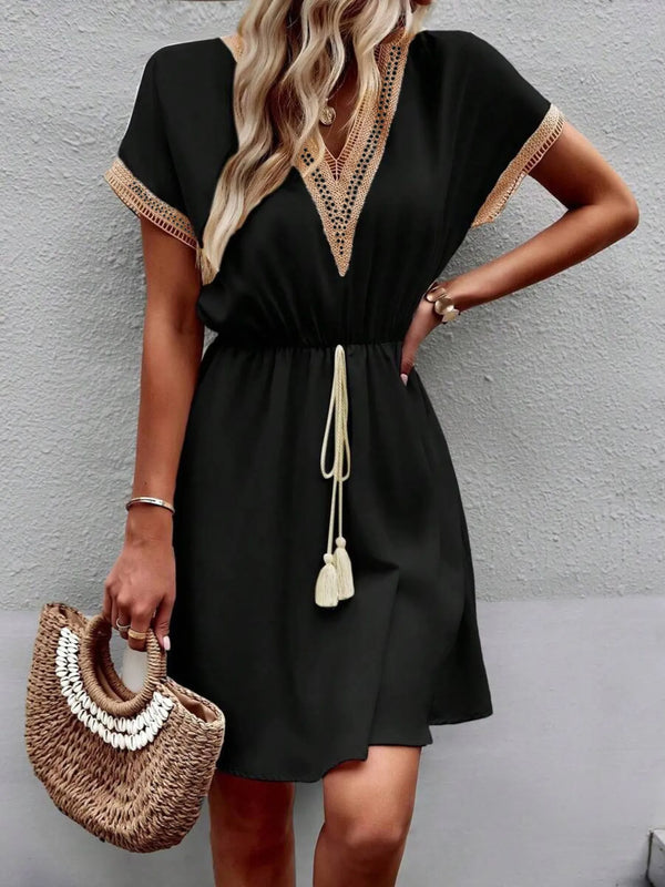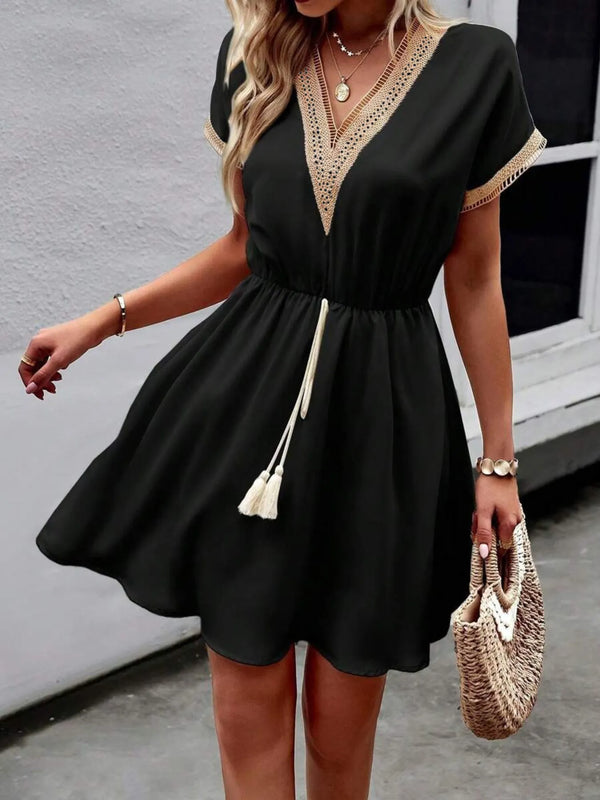 V-Neck Short Sleeve Mini Dress
