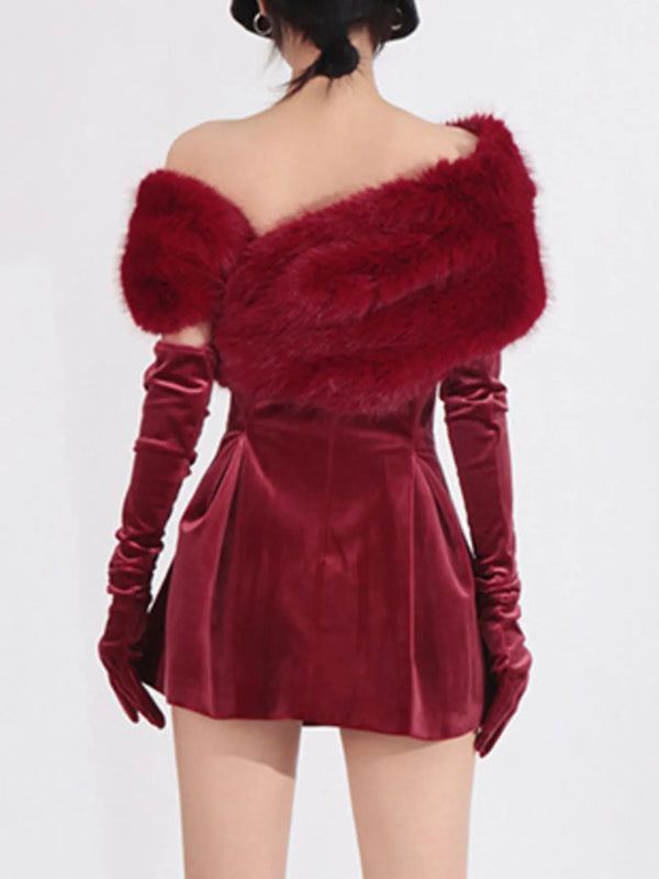 Fuzzy Off Shoulder Mini Dress