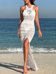Crochet Knit Long Sleeve Maxi Cover-Up Dress