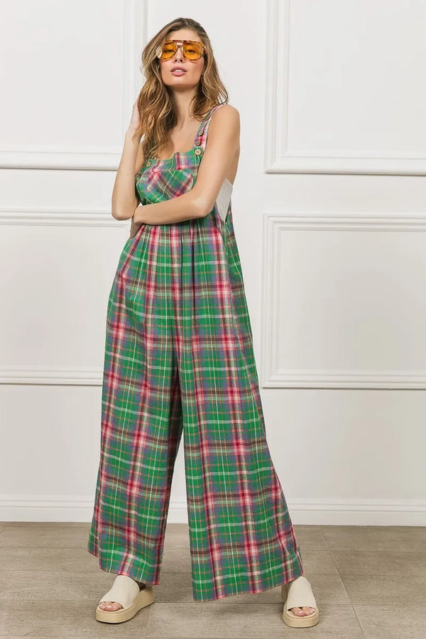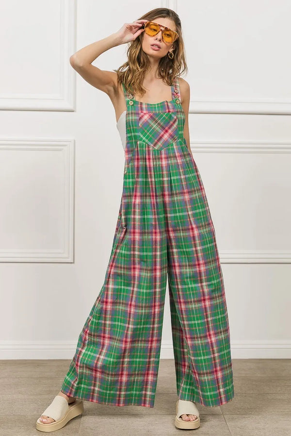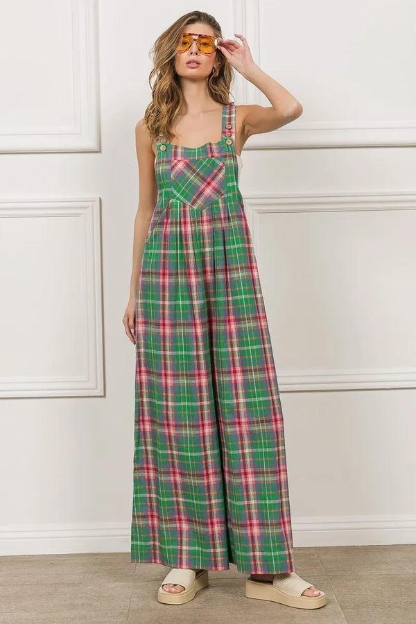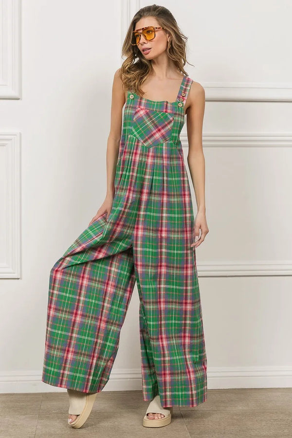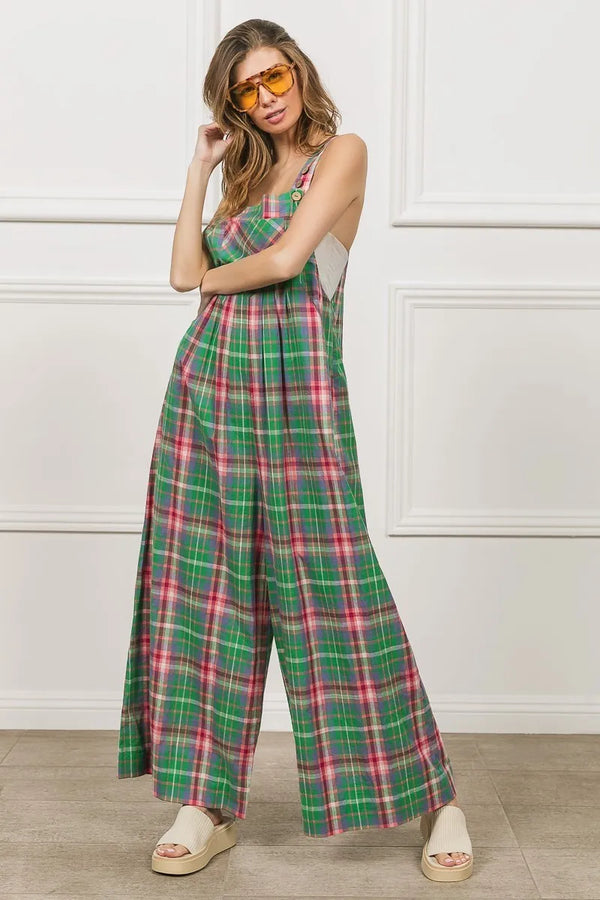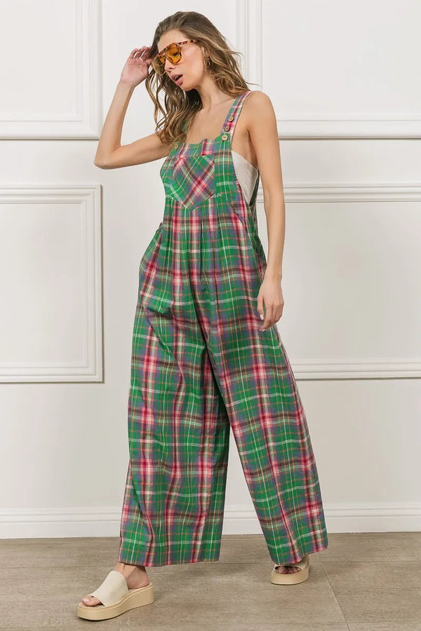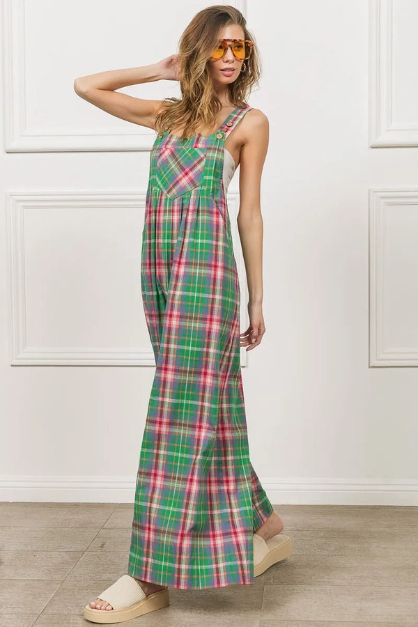 The Multi-Color Check Plaid Overall is a fun and playful garment featuring a patterned design with multiple colors in a checkered plaid pattern. The overall style adds a casual and laid-back vibe to the outfit, making it a versatile piece that can be worn for various occasions. Perfect for a retro-inspired look, these overalls can be paired with a basic tee or a crop top for a trendy and stylish ensemble.
