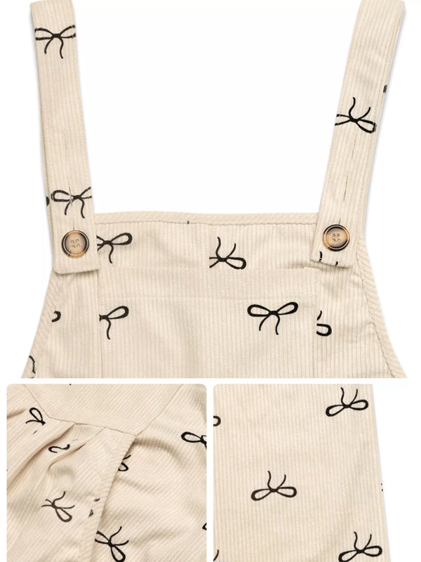 Bow Wide Leg Corduroy Overalls