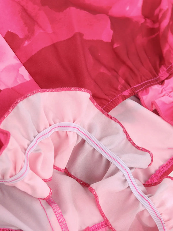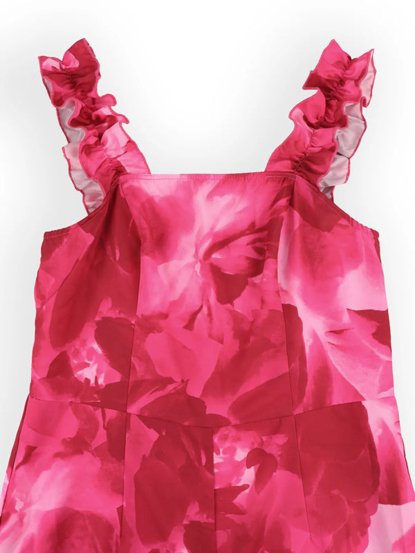 Floral Print Square Neck Wide Leg Jumpsuit