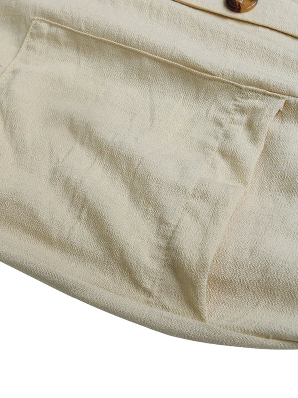 - Features:Tied,Buttoned,Pocketed,Basic style,Smocked