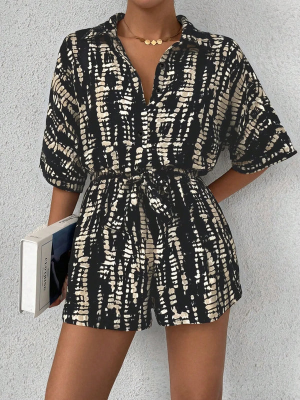 Tie Dye Print Collar Neck Short Sleeve Romper