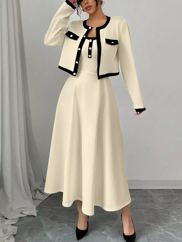 Contrast Trim Maxi Dress and Cropped Cardigan Set
