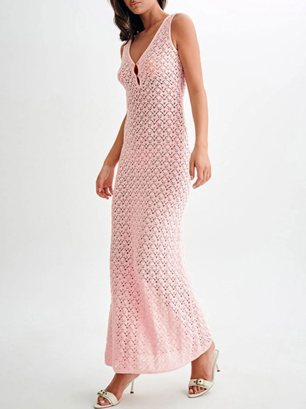 Lace Crochet V-Neck Sleeveless Maxi Dress