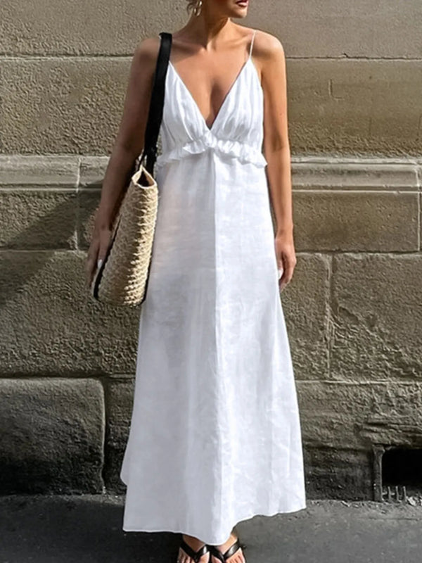 Ruffled V-Neck Maxi Dress