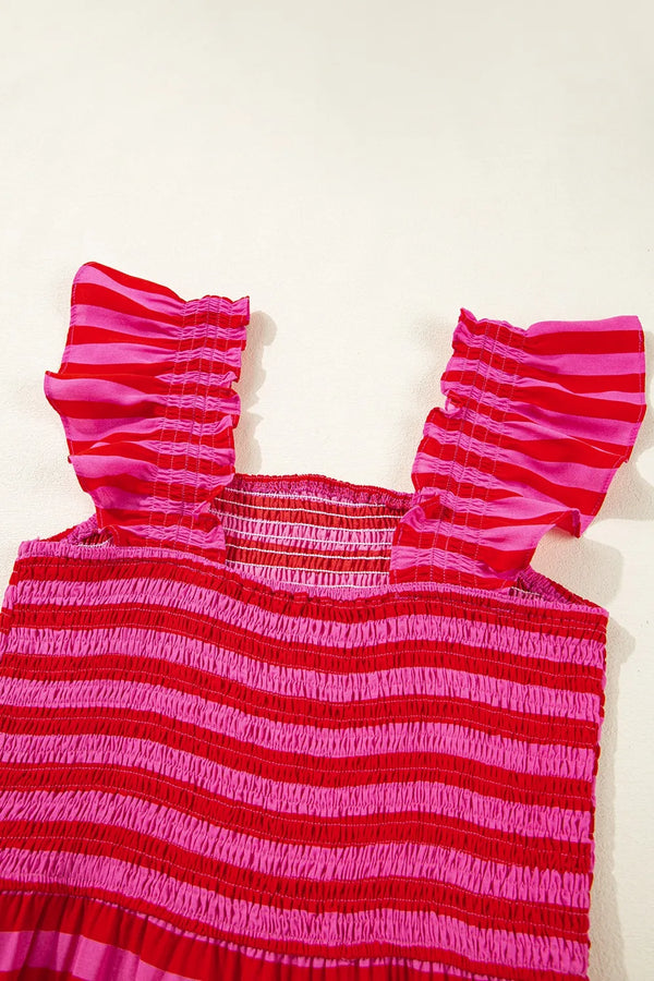Stripe Flutter Sleeve Smocked Bodice Tiered Maxi Dress