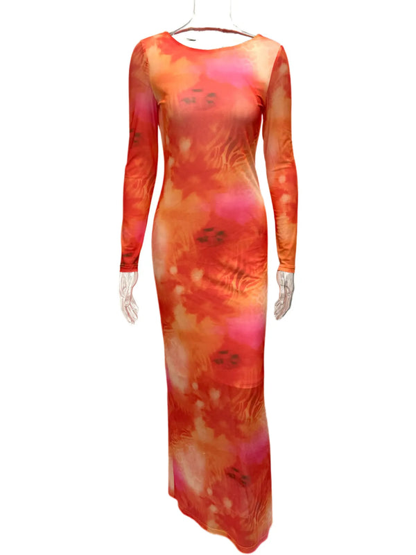 Tie-Dye Long Sleeve Maxi Bodycon Dress