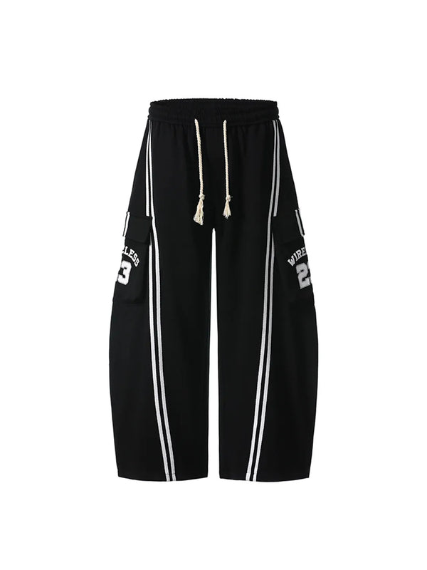 Drawstring Side Striped Wide Leg Pants