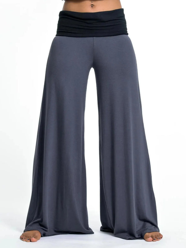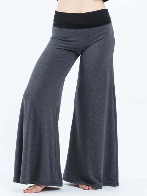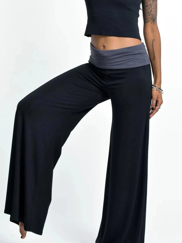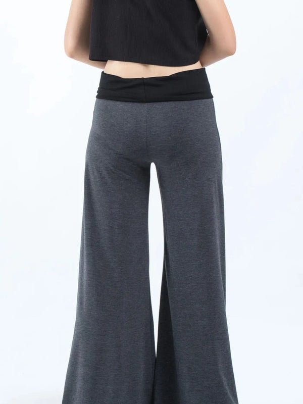 High Waisted Wide Leg Yoga Pants with Contrast Waistband