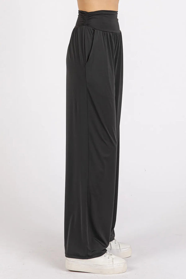 The Stretch Banded Waist Wide Leg Pants with Pockets are a versatile and comfortable addition to your wardrobe. These pants feature a stretchy banded waist for the perfect fit and wide legs for a stylish silhouette. With the added convenience of pockets, these pants strike the ideal balance between style and functionality. Whether you dress them up with a blouse or keep it casual with a t-shirt, these pants are perfect for various occasions. Stay chic and relaxed with the Stretch Banded Waist Wide Leg Pants with Pockets.