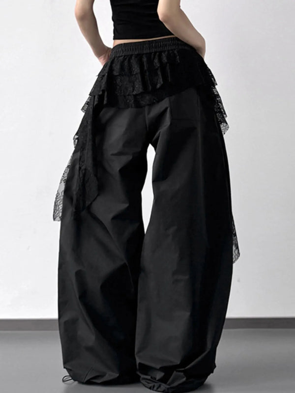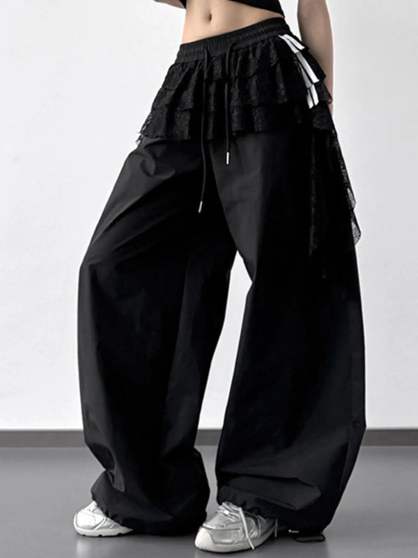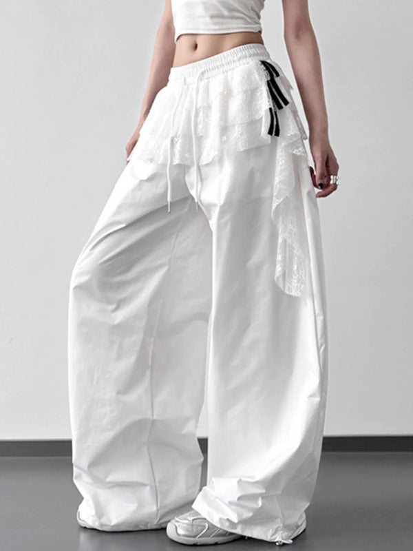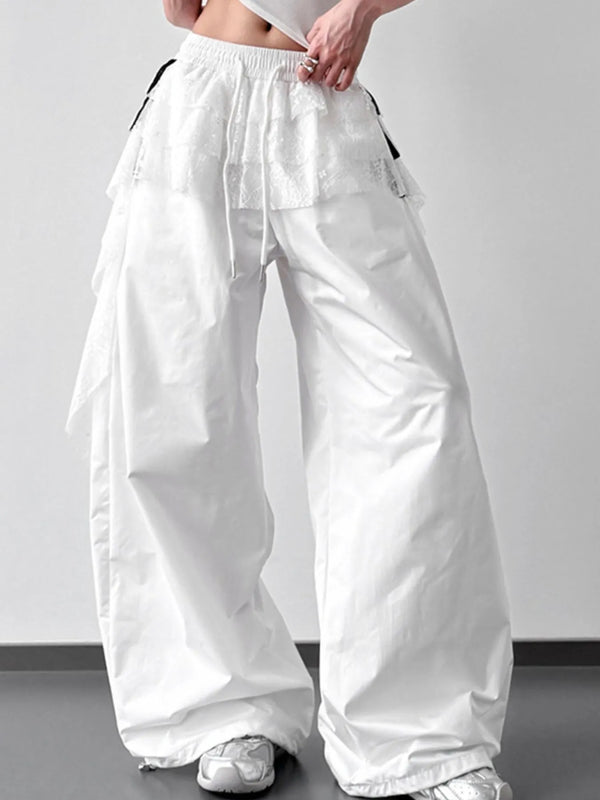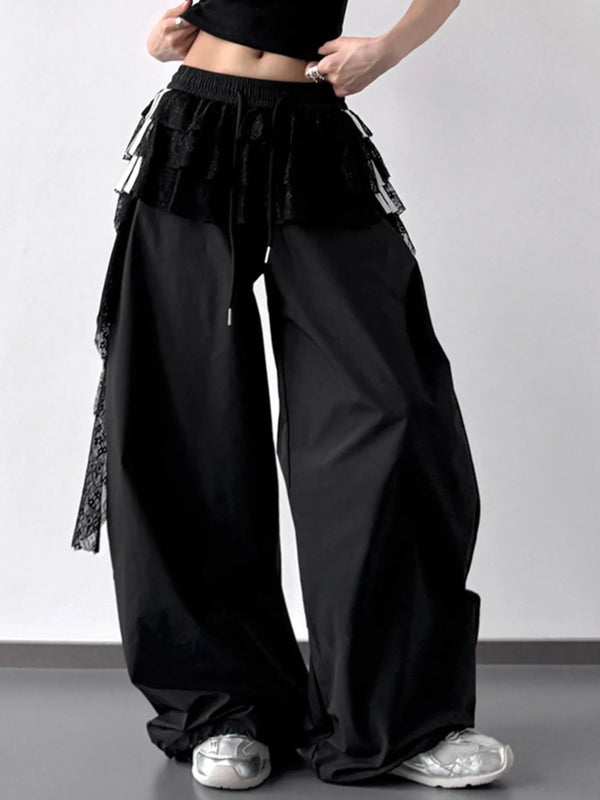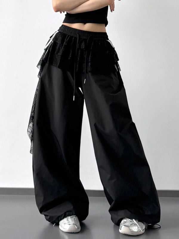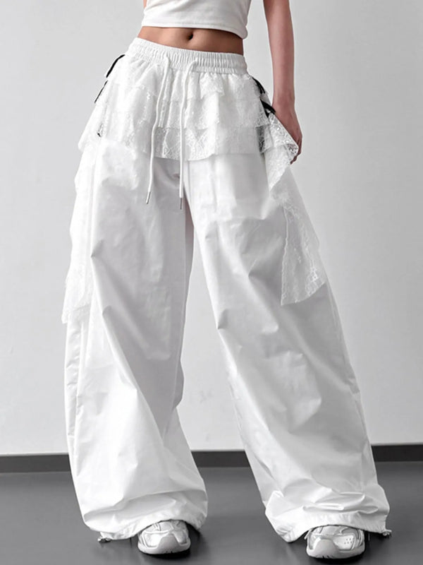 - Features:Oversized,Tied,Lace Detail,Drawstring,Pocketed