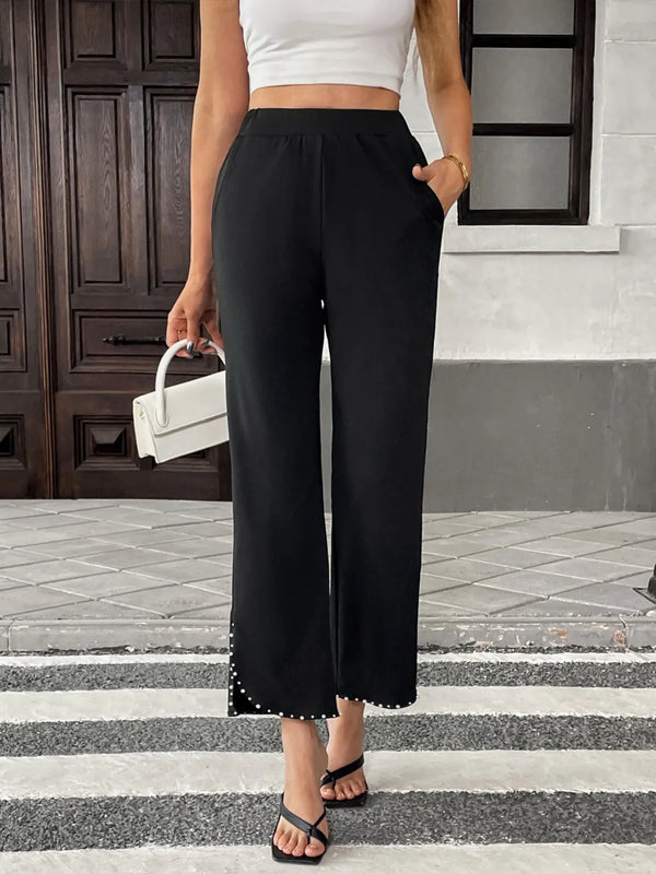 Pearl-Embellished Cropped Wide-Leg Pants