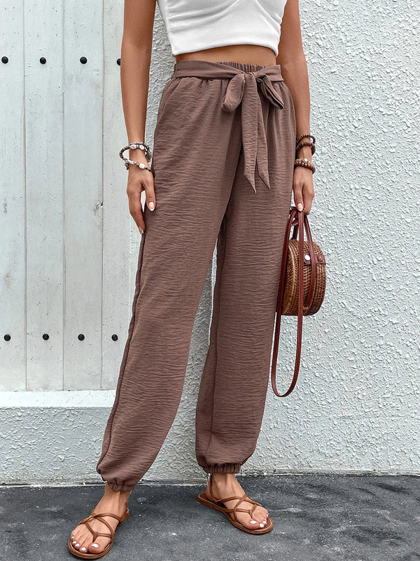 Perfee Tied High Waist Pants with Pockets