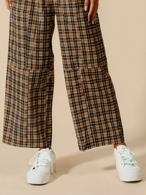 SO ME Check Plaid Wide Leg Pants with Big Patch Pockets