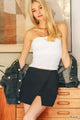 Distressed ripped denim shorts are a trendy and edgy wardrobe staple that adds a cool and casual vibe to your summer style. The distressed detailing, featuring rips and frayed edges, creates a worn-in and fashionable look. These shorts are perfect for showcasing your laid-back and adventurous side while staying comfortable and stylish. Pair them with a graphic tee and sneakers for a relaxed daytime look or dress them up with a blouse and heels for a night out. The versatile nature of distressed denim shorts allows for endless styling options to suit your taste. Embrace the effortless and chic appeal of distressed ripped denim shorts for a trendy and playful look this season.