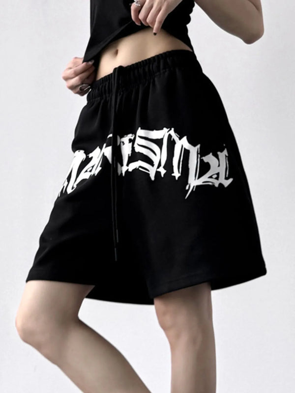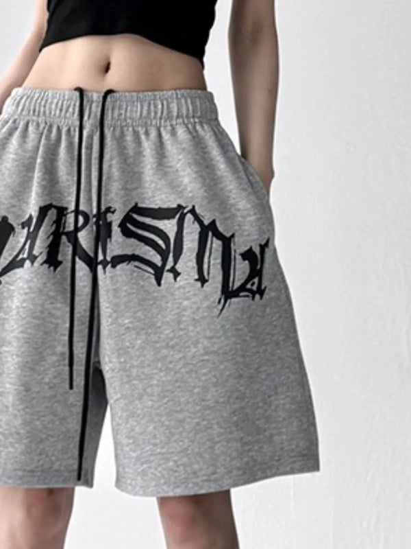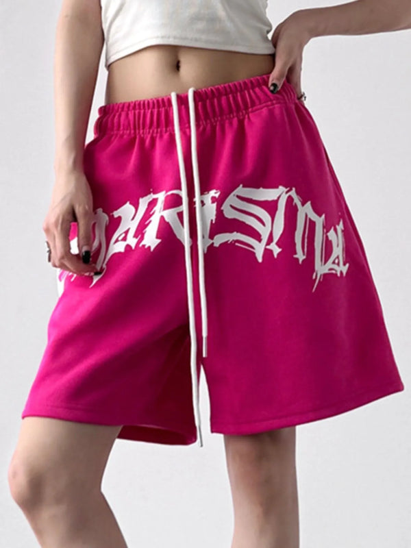 Oversized Drawstring Letter Shorts