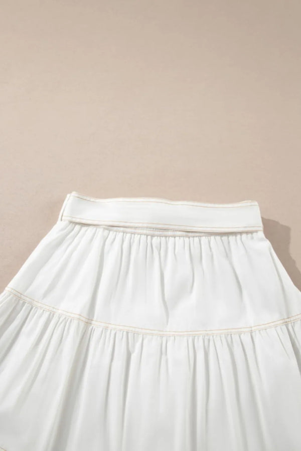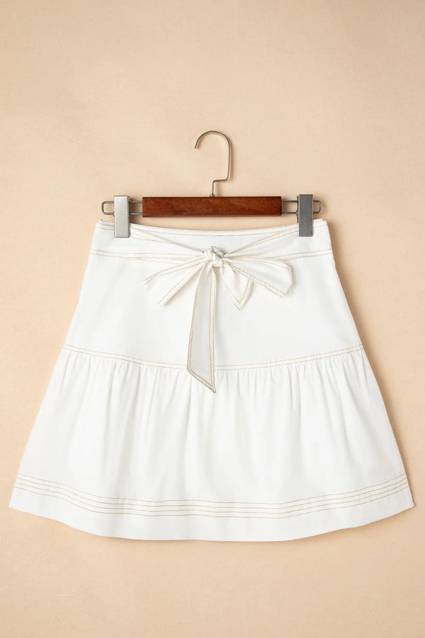 Contrast Stitching Trim Knotted High Waist A-Line Mini Skirt