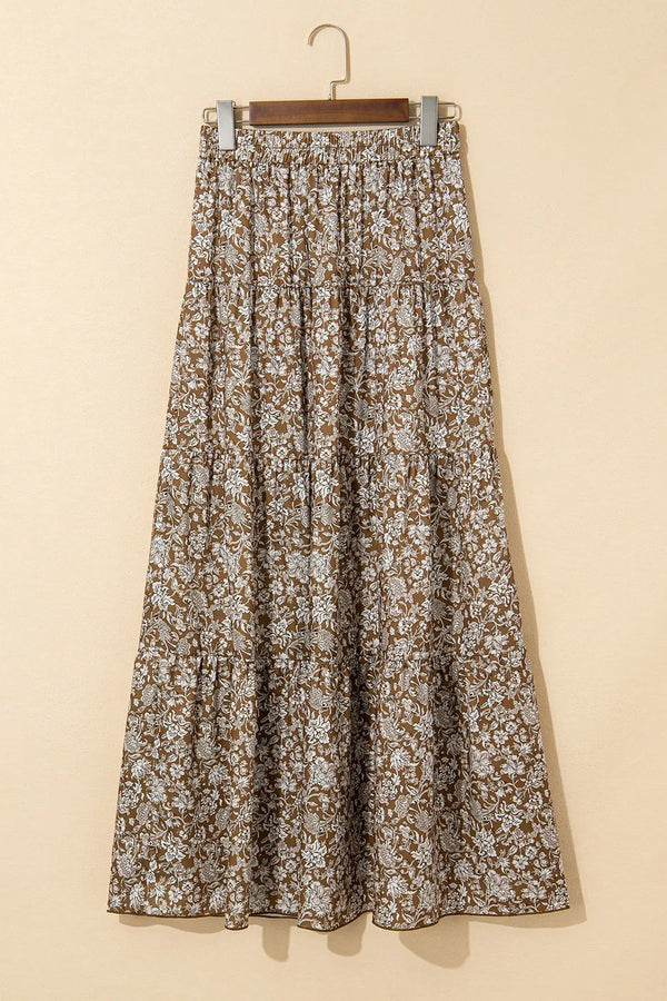 Floral Print Tiered Maxi Skirt