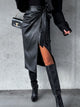 This unique skirt combines comfort, elegance, and a touch of sophistication to elevate your wardrobe. Crafted with the utmost care and attention to detail, this sweater skirt is a must-have for fashion-forward individuals. The cable knit design of this skirt adds a delightful texture and visual interest, creating a fashionable statement piece. Its soft and luxurious feel against your skin ensures a comfortable and enjoyable wearing experience. Featuring a mini slit, this skirt offers a subtle yet alluring detail that adds a hint of playfulness to your outfit. The mini slit not only enhances the overall design but also allows for ease of movement, making it perfect for both casual and dressier occasions. Whether you're attending a social event or simply going about your day, this skirt effortlessly transitions from day to night with style and grace.