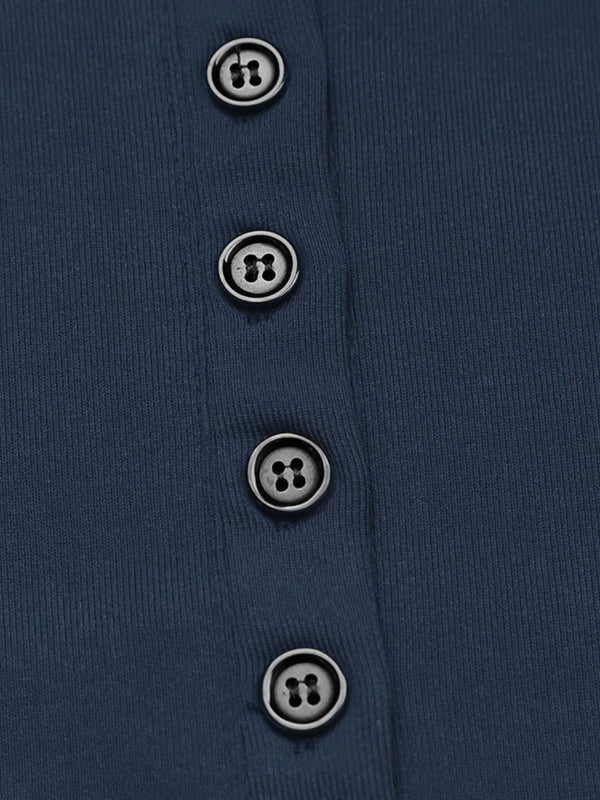 Long Sleeve Button Front Fitted T-Shirt
