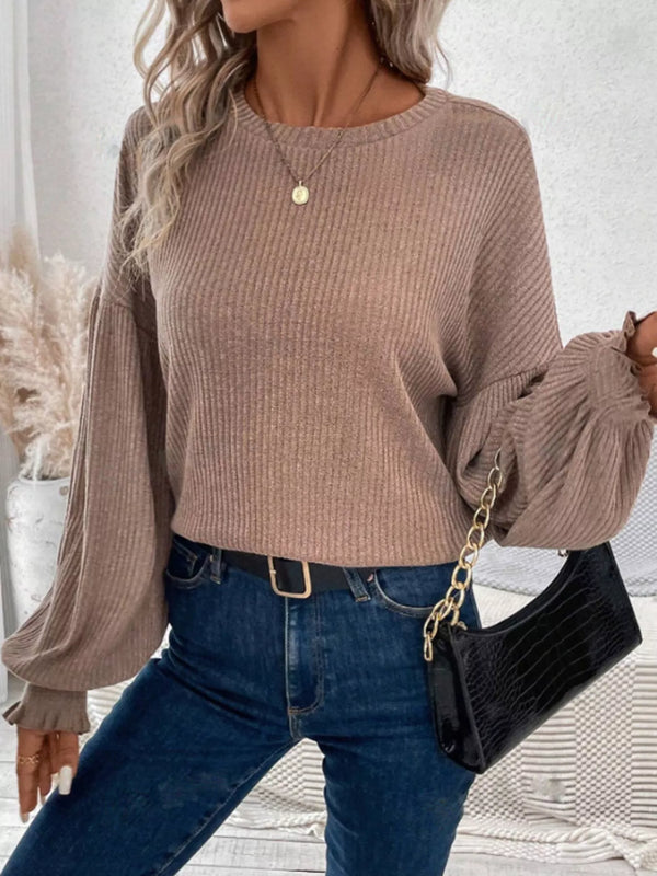 Ribbed Knit Long Sleeve T-Shirt