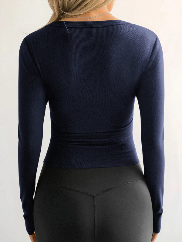 Ribbed V-Neck Long Sleeve T-Shirt