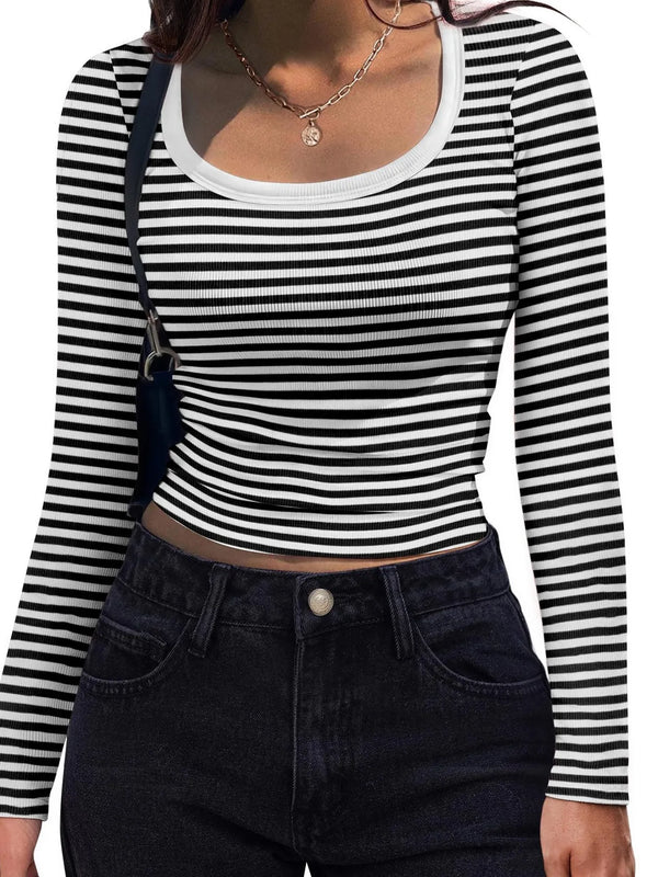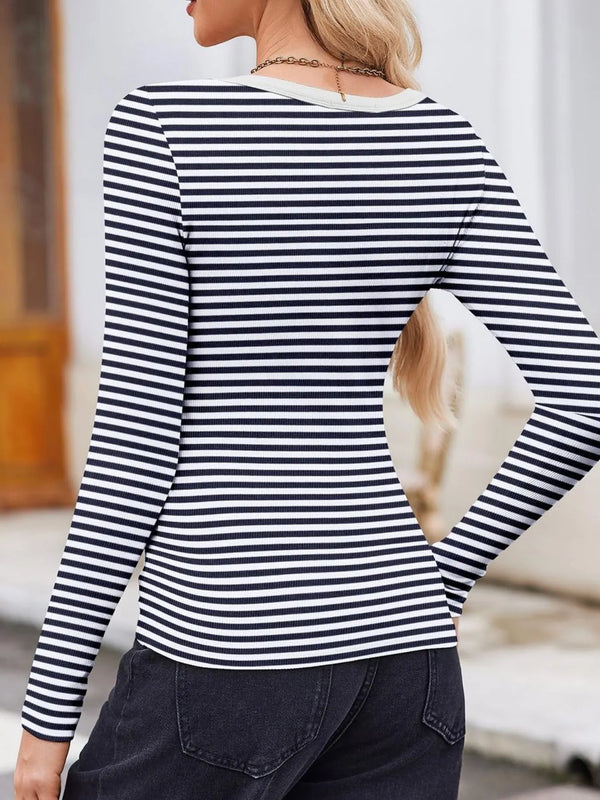 Striped Long Sleeve Scoop Neck T-Shirt