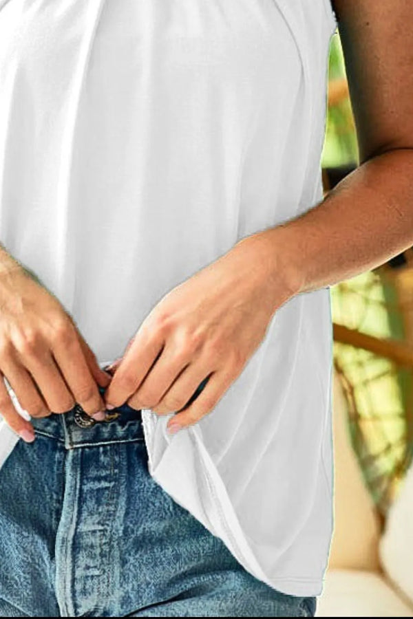 A rayon span jersey knit halter neck tank top is a stylish and versatile piece that features a blend of rayon and spandex in a jersey knit fabric with a flattering halter neckline. The rayon blend offers a soft and flowy feel, while the spandex provides stretch and comfort, making it a practical choice for a tank top. The halter neck design adds a touch of elegance and sophistication to the top, perfect for showcasing the shoulders and collarbones. This tank top is great for layering or wearing on its own, and it can be dressed up or down for various occasions. Overall, a rayon span jersey knit halter neck tank top is a chic and comfortable option that combines style and functionality for a fashionable look.