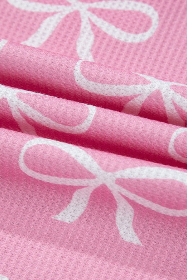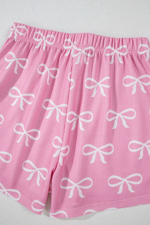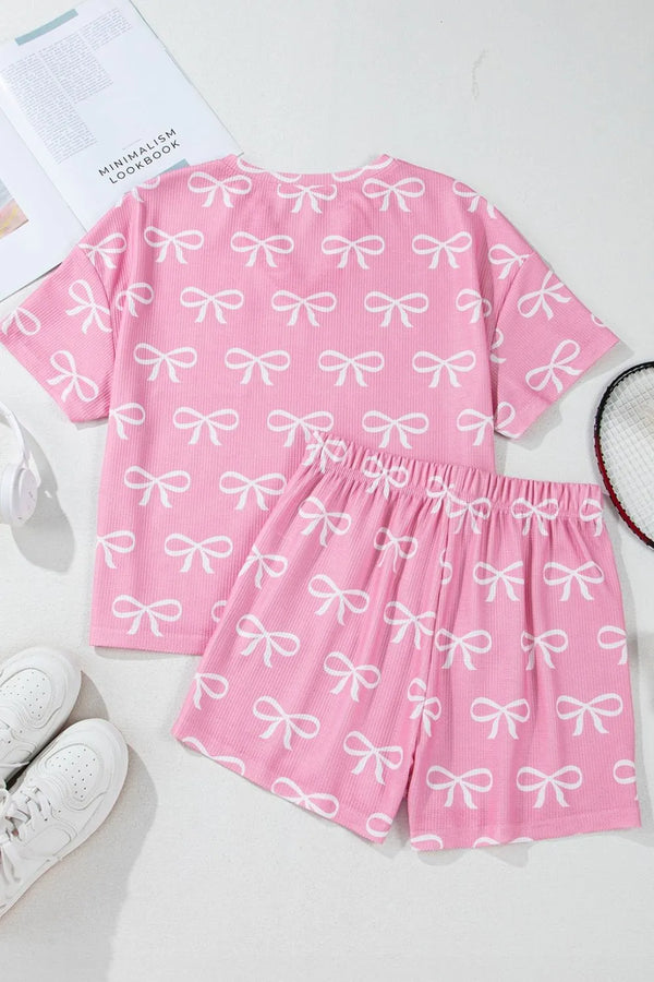 Bowknot Printed Notched T-Shirt and Shorts Set