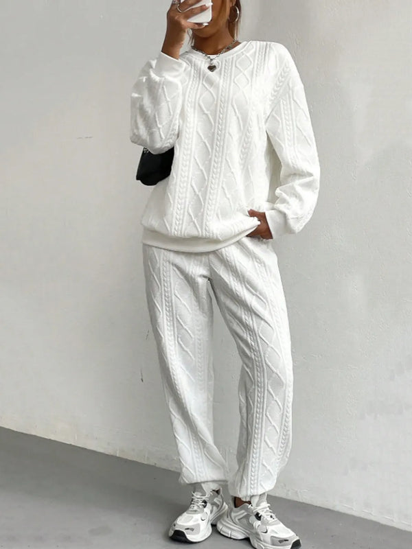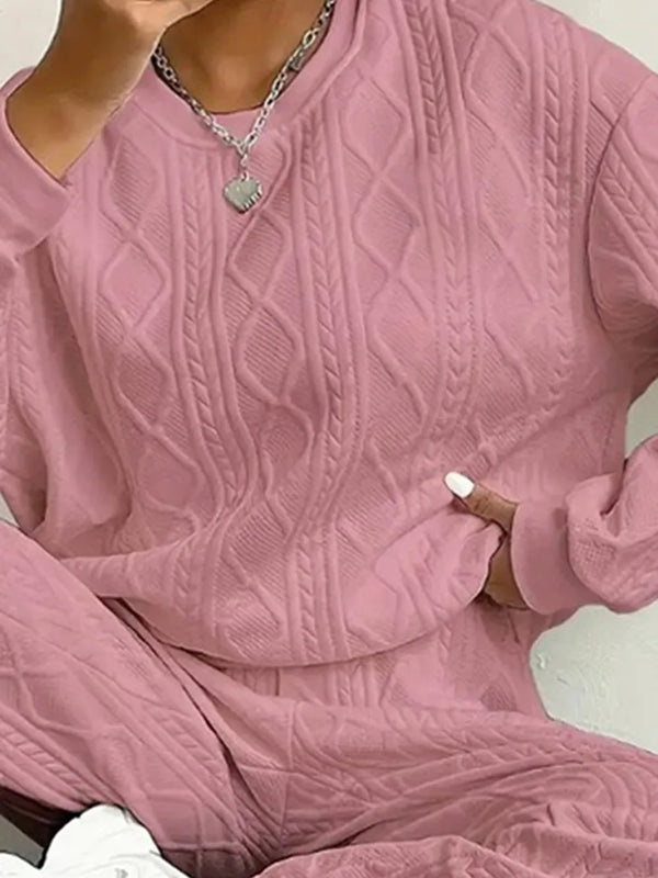 Texture Round Neck Top and Pants Set