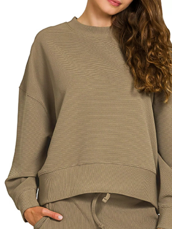 Zenana Ribbed Round Neck Pullover and Drawstring Pants Set